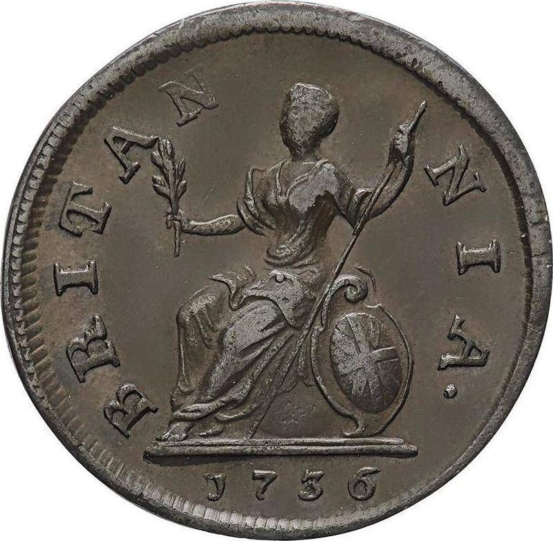 1 Farthing 1736 "Porträt in jungen Jahren" (Großbritannien, Georg II)