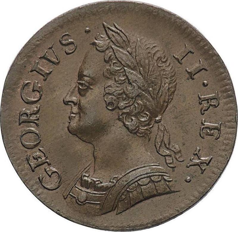 1 Farthing 1754 "Porträt im Alter" (Großbritannien, Georg II)