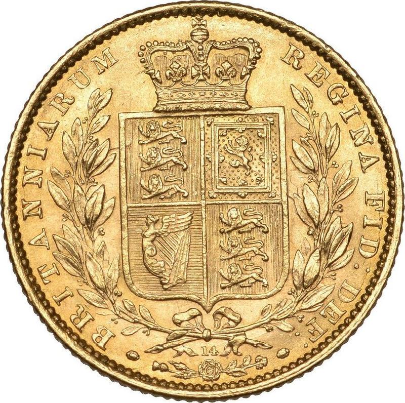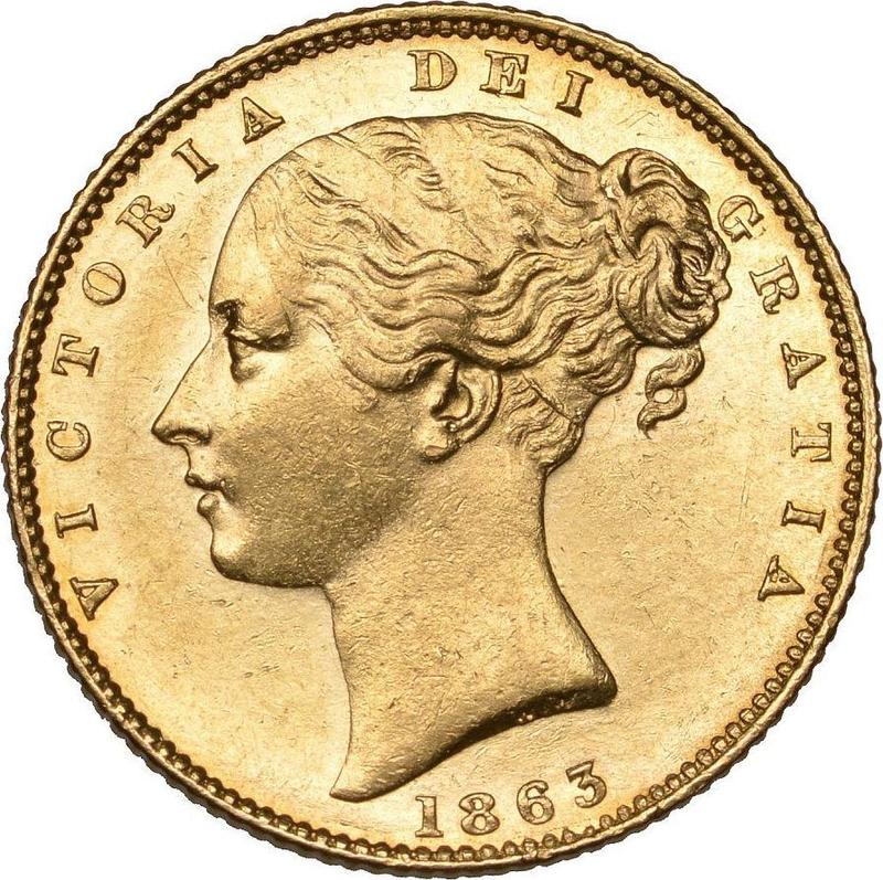 Sovereign 1863 WW "Wappen". Nummer unter der Schleife (Großbritannien, Victoria)