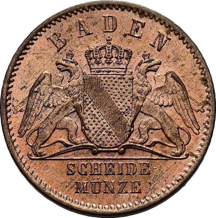 Descubra el valor actual de la moneda de Baden de Medio kreuzer de 1864 . Esta moneda de cobre pertenece al tiempo de Federico I y fue acuñada en la ceca de Karlsruhe. ¿Cuál es el precio de una moneda como esta? El precio récord pertenece al lote 1186 vendido en la subasta Fritz Rudolf Künker GmbH & Co. KG por EUR 48. La subasta tuvo lugar el 1 de febrero de 2022.