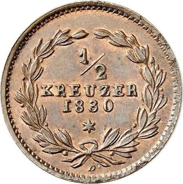 Descubra el valor actual de la moneda de Baden de Medio kreuzer de 1830 . Esta moneda de cobre pertenece al tiempo de Luis I y fue acuñada en la ceca de Karlsruhe. ¿Cuál es el precio de una moneda como esta? El precio récord pertenece al lote 1221 vendido en la subasta Heidelberger Münzhandlung Herbert Grün por EUR 150. La subasta tuvo lugar el 12 de mayo de 2016.