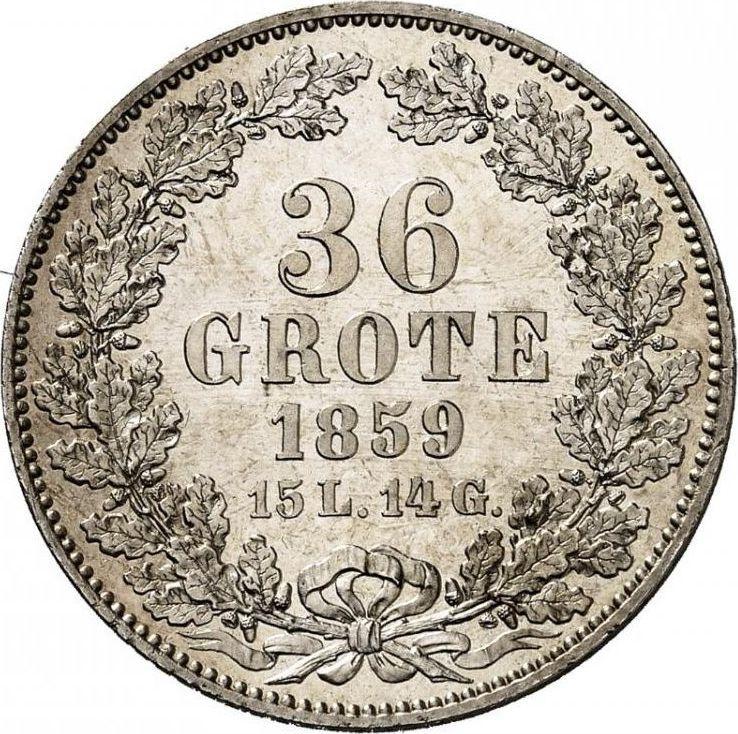 ¿Cuánto vale la moneda de platade de ciudad libre hanseática de 36 grote del 1859?
