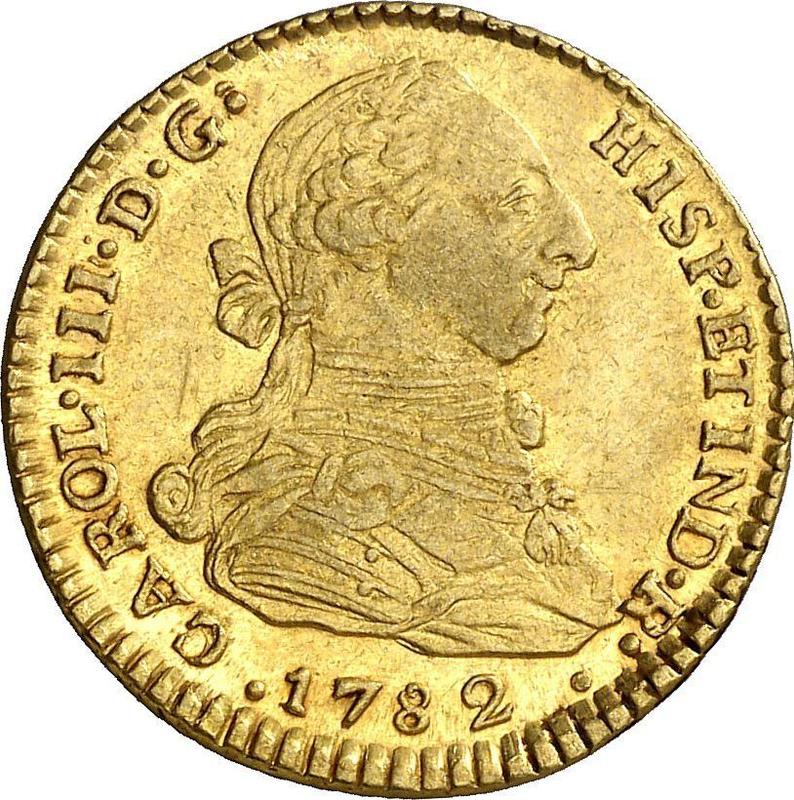 ¿Cuánto vale la moneda de orode de Carlos III de 2 escudos del 1782. P. SF?