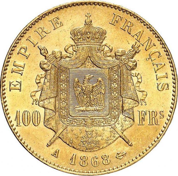 Descubra el valor actual de la moneda francesa de 100 francos de 1868 con marca de ceca A. Esta moneda de oro pertenece al tiempo de Napoleón III Bonaparte y fue acuñada en la ceca de París. ¿Cuál es el precio de una moneda como esta? El precio récord pertenece al lote 31121 vendido en la subasta Heritage Auctions por USD 40800. La subasta tuvo lugar el 8 de enero de 2024.