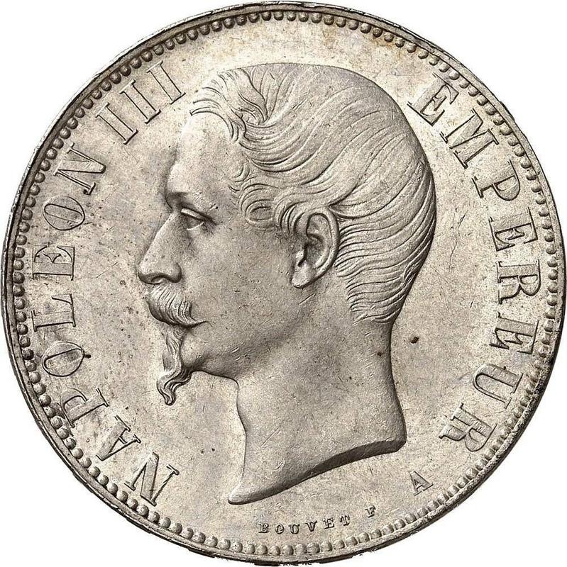 Descubra el valor actual de la moneda francesa de 5 francos de 1855 con marca de ceca A. Esta moneda de plata pertenece al tiempo de Napoleón III Bonaparte y fue acuñada en la ceca de París. ¿Cuál es el precio de una moneda como esta? El precio récord pertenece al lote 760 vendido en la subasta Maison Palombo por CHF 11000. La subasta tuvo lugar el 22 de octubre de 2016.