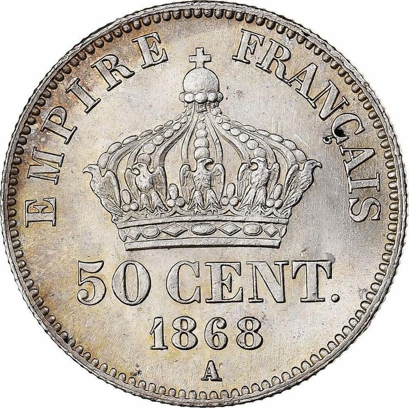 50 céntimos 1868 A "Tipo 1864-1869" (Francia, Napoleón III Bonaparte)
