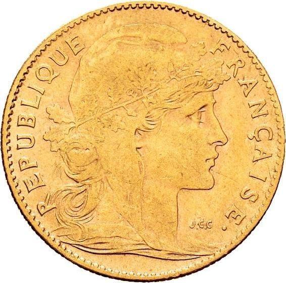 Descubra el valor actual de la moneda francesa de 10 francos de 1905 . Esta moneda de oro pertenece al tiempo de la Tercera República y fue acuñada en la ceca de París. ¿Cuál es el precio de una moneda como esta? El precio récord pertenece al lote 46 vendido en la subasta The Coin Cabinet por GBP 280. La subasta tuvo lugar el 10 de abril de 2022.