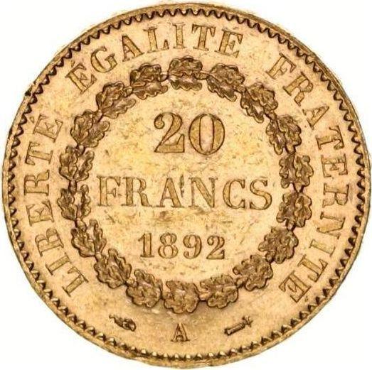 20 francos 1892 A "Tipo 1871-1898" (Francia, Tercera República)