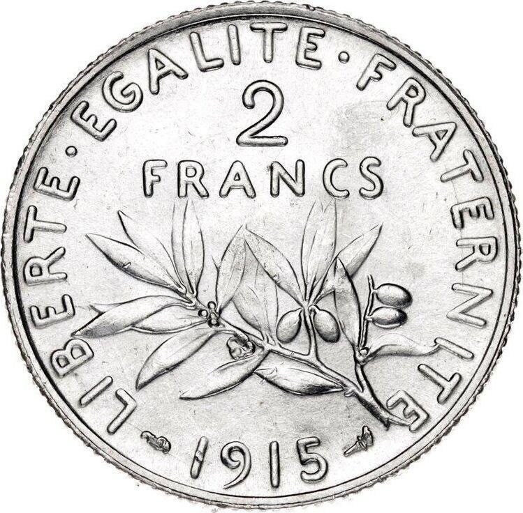 Según los últimos datos, a fecha de 5 de diciembre de 2025, el valor medio de la moneda de plata de 2 francos del 1915. "Sembrador" es de 30 USD.