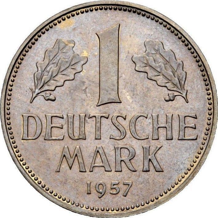 Según los últimos datos, a fecha de 6 de diciembre de 2025, el valor medio de la moneda de 1 marco del 1957. J es de 40 USD para las monedas de acuñación regular y de 230 USD para las monedas PROOF. La moneda no está hecha de un metal precioso, por lo que si su estado de conservación es deficiente, su valor y liquidez pueden ser muy bajos.