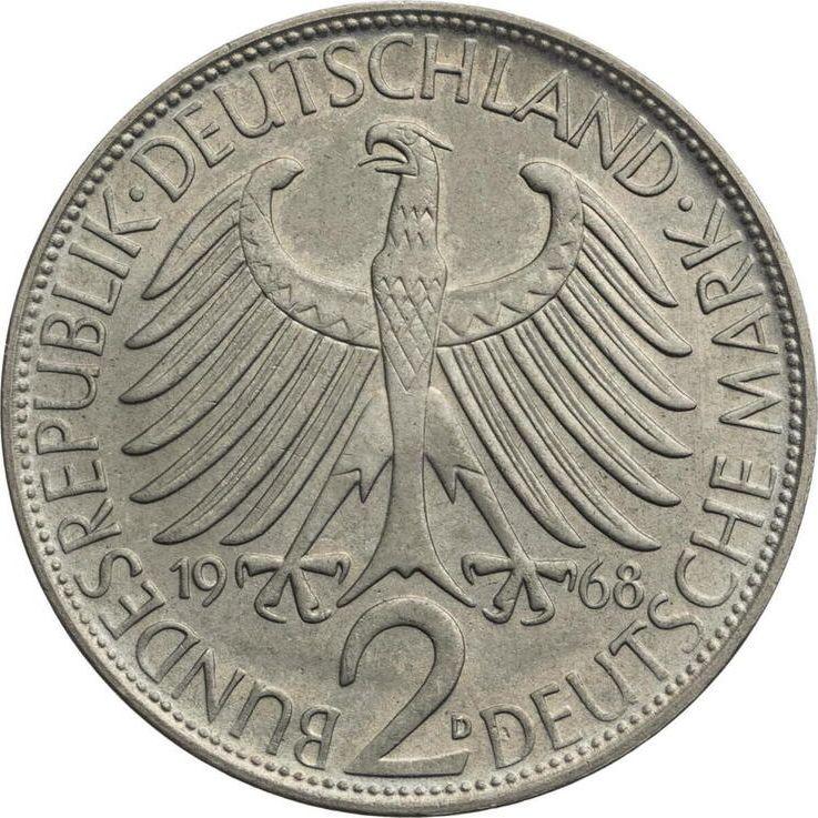 2 marcos 1968 D "Max Planck" (Alemania, RFA)