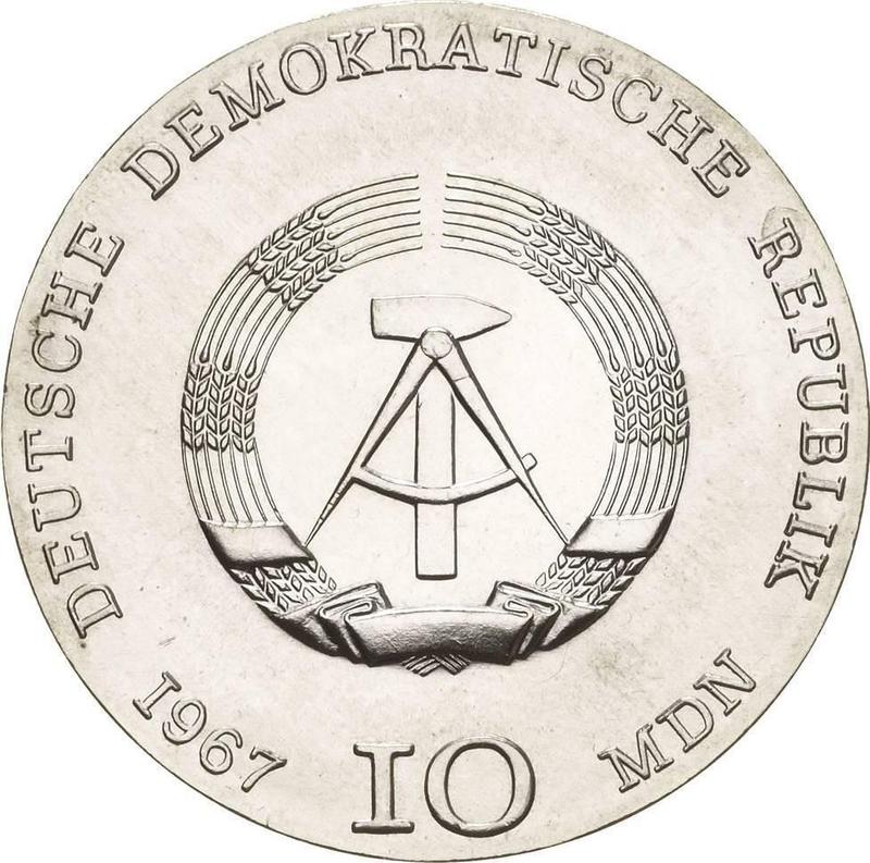 Descubra el valor actual de la moneda alemana de 10 marcos de 1967 "Kollwitz". Canto (10 MARK * 10 MARK * 10 MARK). Esta moneda de plata pertenece al tiempo de la República Democrática Alemana (RDA) y fue acuñada en la ceca de Berlín. ¿Cuál es el precio de una moneda como esta? El precio récord pertenece al lote 421 vendido en la subasta Leipziger Münzhandlung Heidrun Höhn por EUR 180. La subasta tuvo lugar el 9 de septiembre de 2011.