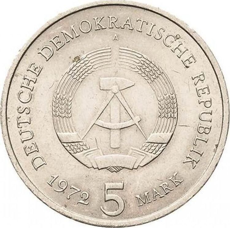 Según los últimos datos, a fecha de 5 de diciembre de 2025, el valor medio de la moneda de 5 marcos del 1972. A. "Meissen" es de 460 USD. La moneda no está hecha de un metal precioso, por lo que si su estado de conservación es deficiente, su valor y liquidez pueden ser muy bajos.