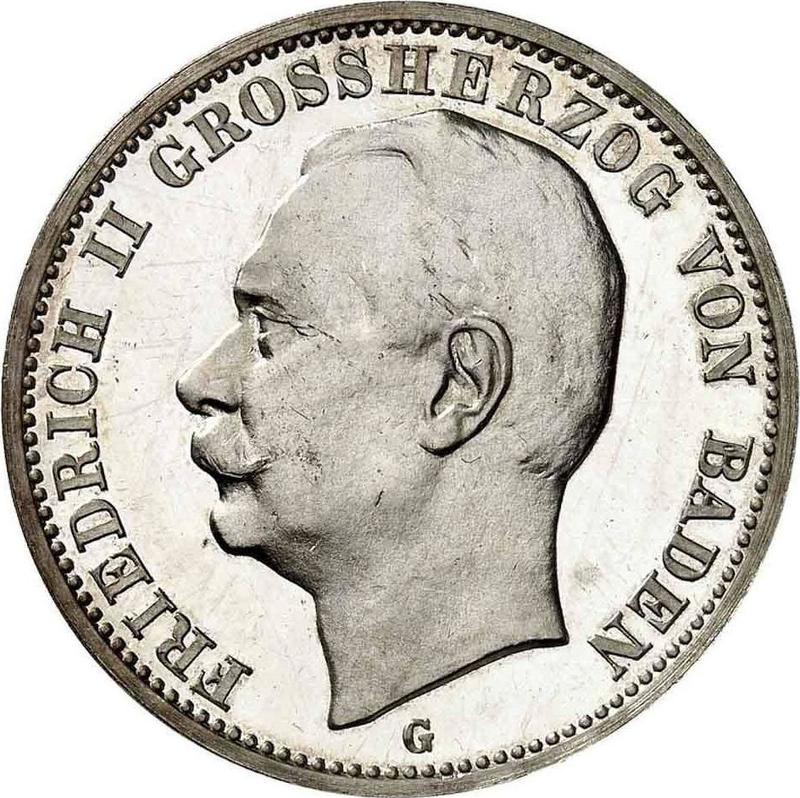 Descubra el valor actual de la moneda alemana de 3 marcos de 1914 "Baden" con marca de ceca G. Esta moneda de plata pertenece al tiempo del Imperio alemán y fue acuñada en la ceca de Karlsruhe. ¿Cuál es el precio de una moneda como esta? El precio récord pertenece al lote 1395 vendido en la subasta Gorny & Mosch Giessener Münzhandlung GmbH por EUR 1100. La subasta tuvo lugar el 20 de abril de 2021.