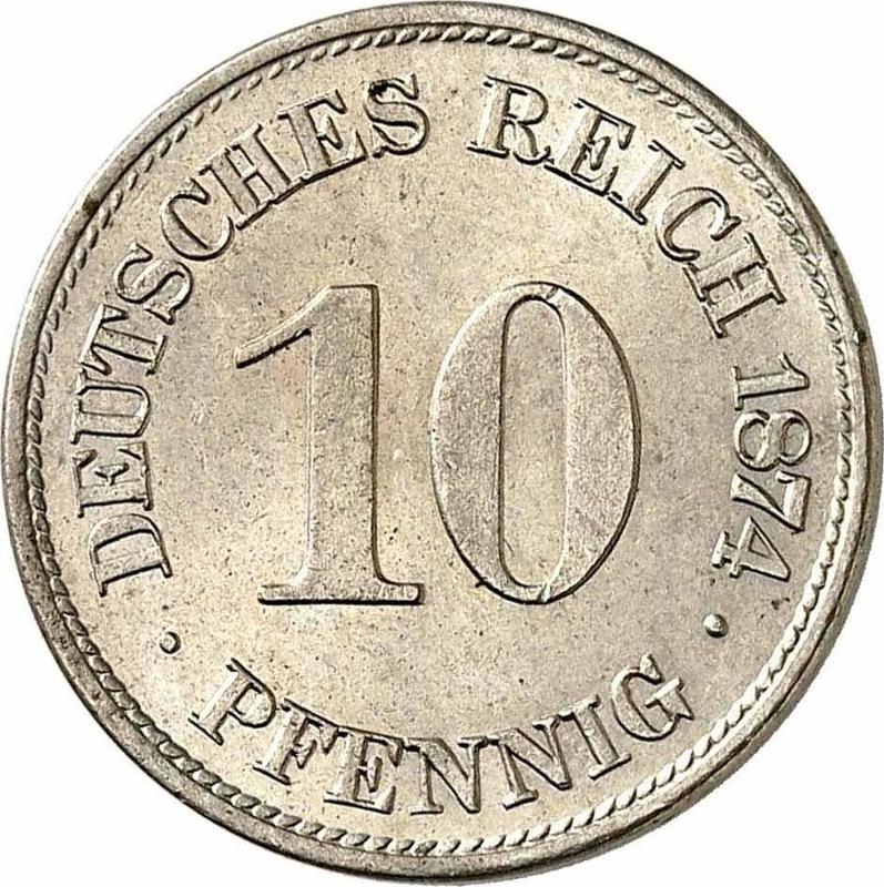10 Pfennige 1874 E "Tipo 1873-1889" (Alemania, Imperio alemán)