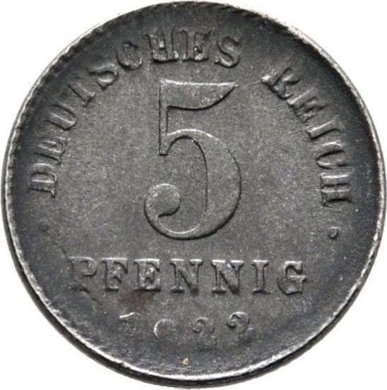 5 Pfennige 1922 J (Alemania, Imperio alemán)