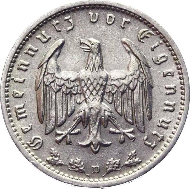 Descubra el valor actual de la moneda alemana de 1 Reichsmark de 1934 con marca de ceca D. Esta moneda de níquel pertenece al tiempo de la Alemania nazi y fue acuñada en la ceca de Múnich. ¿Cuál es el precio de una moneda como esta? El precio récord pertenece al lote 1247 vendido en la subasta H.D. Rauch por EUR 52. La subasta tuvo lugar el 12 de diciembre de 2013.