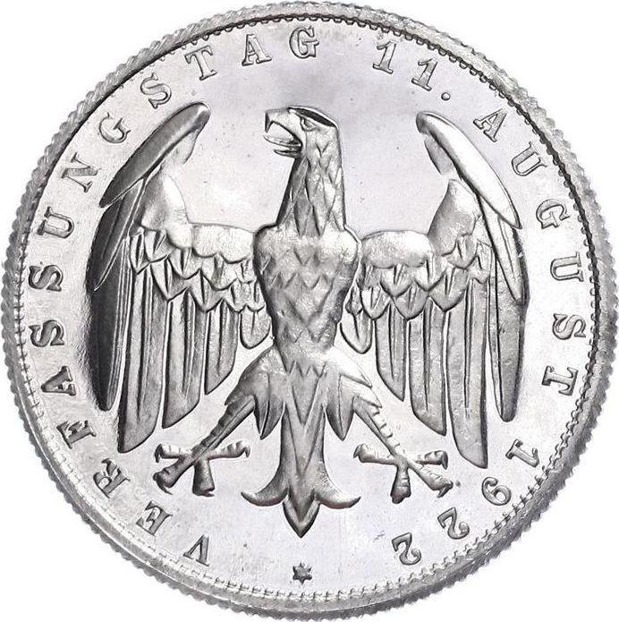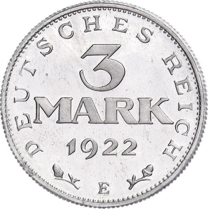 3 marcos 1922 E "Constitución" (Alemania, República de Weimar)