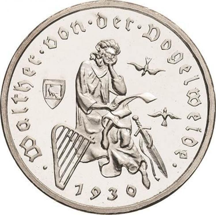 3 Reichsmarks 1930 E "Vogelweide" (Alemania, República de Weimar)