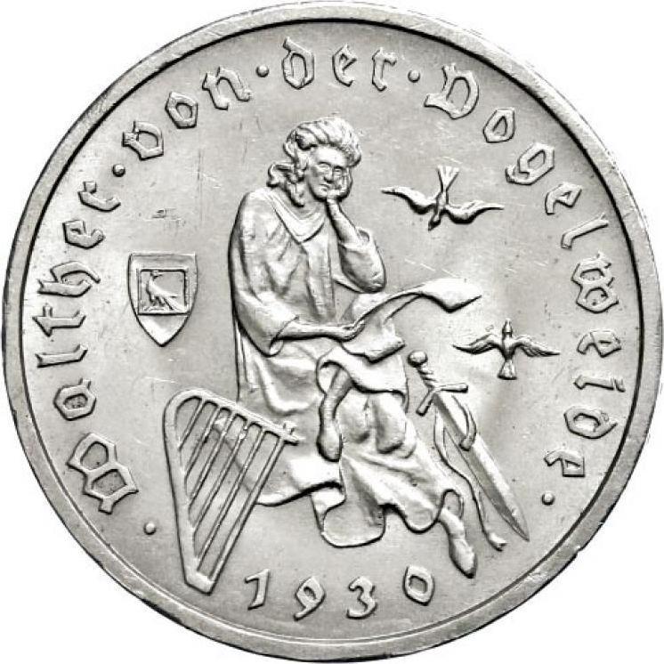 3 Reichsmarks 1930 J "Vogelweide" (Alemania, República de Weimar)
