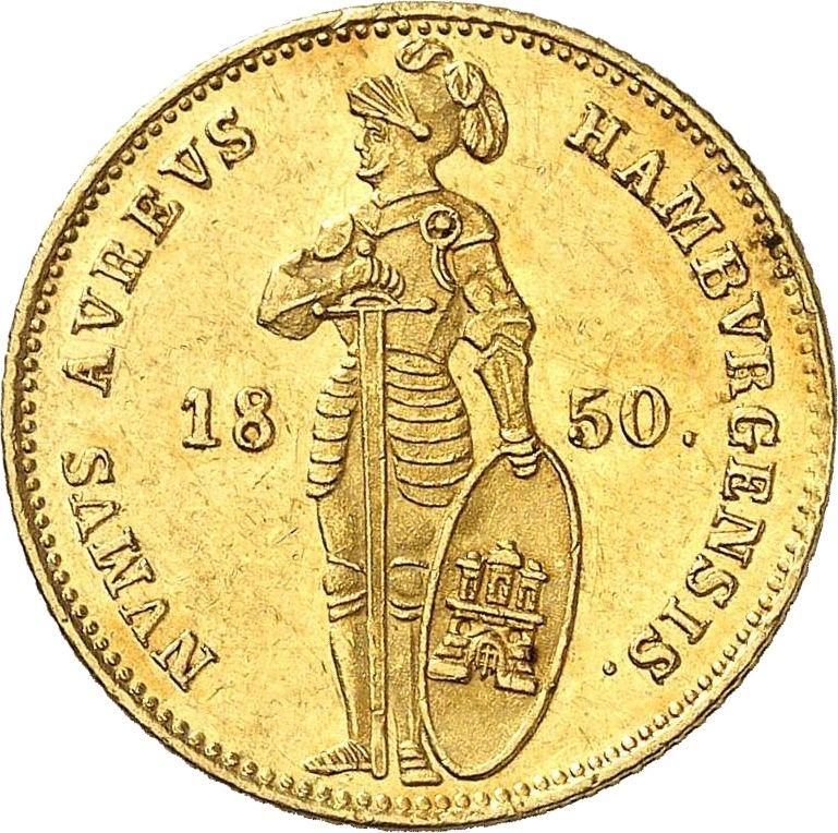 Descubra el valor actual de la moneda hamburgo de Ducado de 1850 . Esta moneda de oro pertenece al tiempo de Ciudad libre de Hamburgo y fue acuñada en la ceca de Hamburgo. ¿Cuál es el precio de una moneda como esta? El precio récord pertenece al lote 24141 vendido en la subasta Heritage Auctions por USD 1093. La subasta tuvo lugar el 2 de enero de 2012.