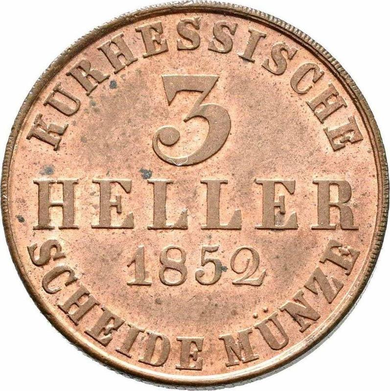 3 Heller 1852 (Hesse-Cassel, Federico Guillermo)