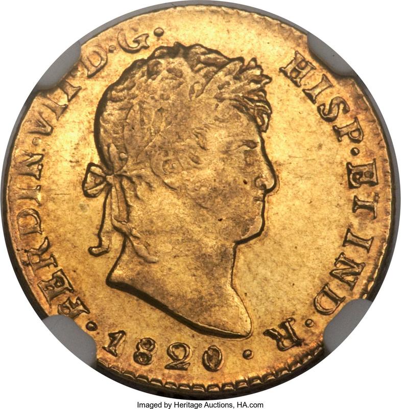 Descubra el valor actual de la moneda mexicana de 1 escudo de 1820 con marca de ceca Mo JJ. Esta moneda de oro pertenece al tiempo de Fernando VII y fue acuñada en la ceca de Ciudad de México. ¿Cuál es el precio de una moneda como esta? El precio récord pertenece al lote 31383 vendido en la subasta Heritage Auctions por USD 3525. La subasta tuvo lugar el 13 de agosto de 2015.