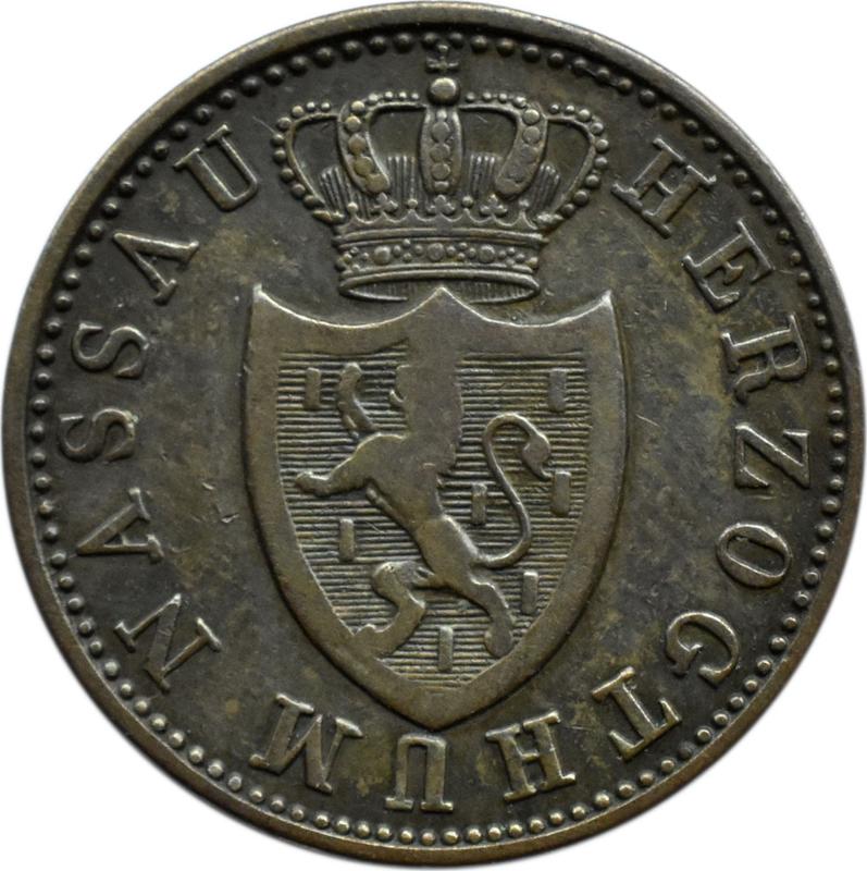 Descubra el valor actual de la moneda Nassau de 1 Kreuzer de 1838 . Esta moneda de cobre pertenece al tiempo de Guillermo y fue acuñada en la ceca de Por favor, proporcione el texto para ser traducido del ruso.. ¿Cuál es el precio de una moneda como esta? El precio récord pertenece al lote 653 vendido en la subasta Katz Auction por EUR 42. La subasta tuvo lugar el 15 de agosto de 2023.