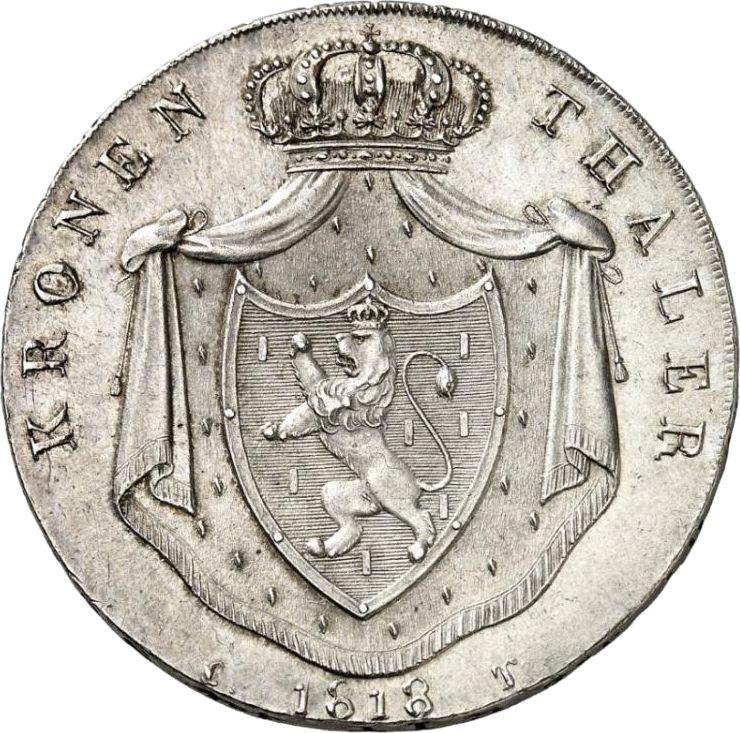 Descubra el valor actual de la moneda Nassau de Tálero de 1818 con marca de ceca CT PZ. Esta moneda de plata pertenece al tiempo de Guillermo. ¿Cuál es el precio de una moneda como esta? El precio récord pertenece al lote 5 vendido en la subasta Hess Divo por EUR 6500. La subasta tuvo lugar el 25 de diciembre de 2013.