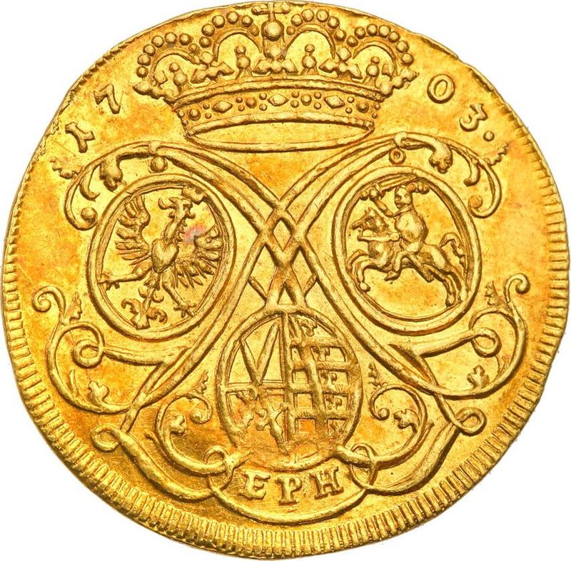 Descubra el valor actual de la moneda polonesa de Ducado de 1703 "de corona" con marca de ceca EPH. Esta moneda de oro pertenece al tiempo de Augusto II y fue acuñada en la ceca de Leipzig. ¿Cuál es el precio de una moneda como esta? El precio récord pertenece al lote 151 vendido en la subasta NIEMCZYK - Dom Aukcyjny por PLN 68000. La subasta tuvo lugar el 26 de octubre de 2019.