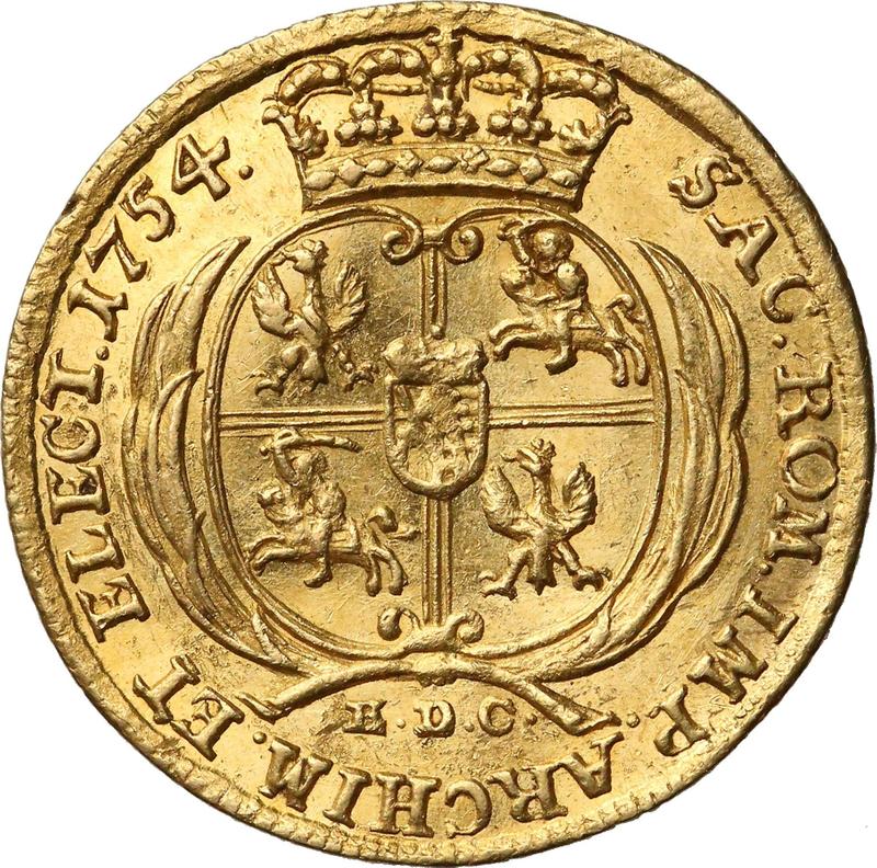 Descubra el valor actual de la moneda polonesa de Ducado de 1754 "de corona" con marca de ceca EDC. Esta moneda de oro pertenece al tiempo de Augusto III y fue acuñada en la ceca de Leipzig. ¿Cuál es el precio de una moneda como esta? El precio récord pertenece al lote 1403 vendido en la subasta Numismatica Ars Classica, Zurich por CHF 11000. La subasta tuvo lugar el 6 de noviembre de 2025.
