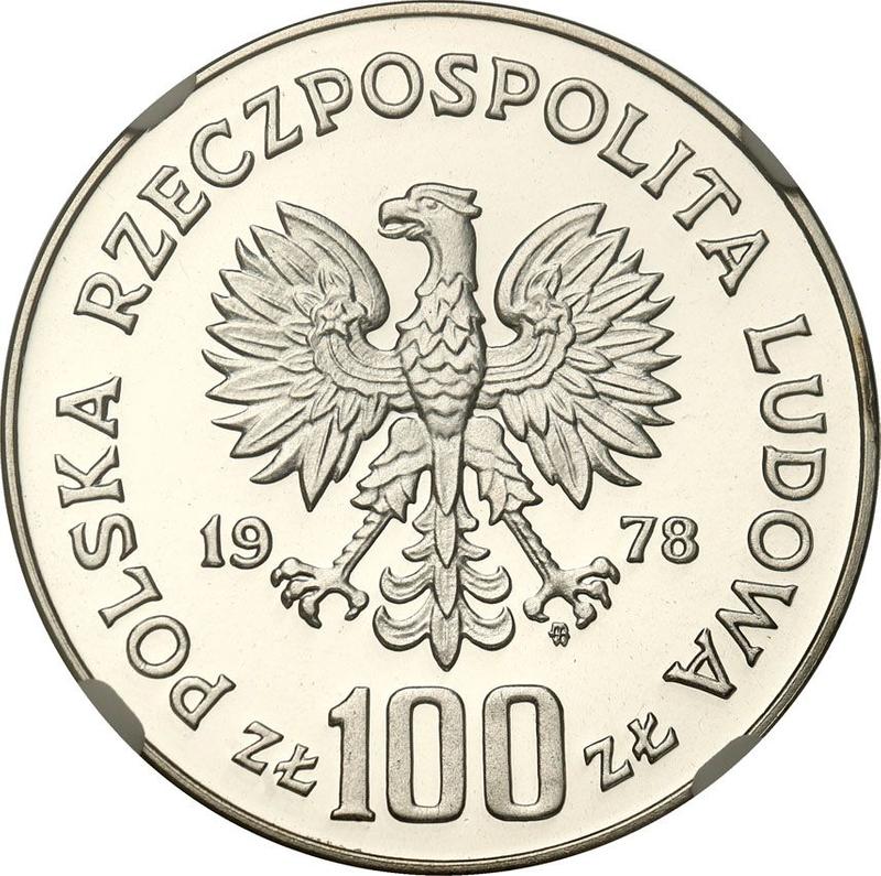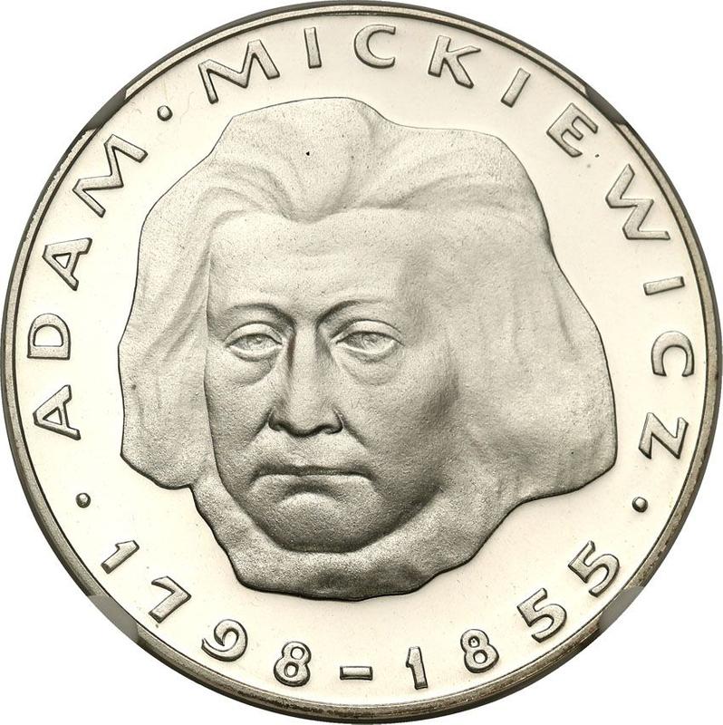 Descubra el valor actual de la moneda polonesa de 100 eslotis de 1978 "Bicentenario de Adam Mickiewicz" con marca de ceca MW. Plata. Esta moneda de plata pertenece al tiempo de la República Popular y fue acuñada en la ceca de Varsovia. ¿Cuál es el precio de una moneda como esta? El precio récord pertenece al lote 794 vendido en la subasta WÓJCICKI Polski Dom Aukcyjny por PLN 260. La subasta tuvo lugar el 26 de febrero de 2022.