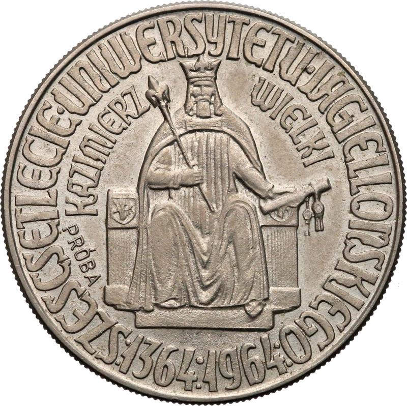 Pruebas 10 eslotis 1964 "600 aniversario de la Universidad Jaguelónica". Águila en la corona. Cuproníquel (Polonia, República Popular)