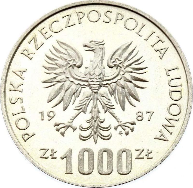 ¿Cuánto vale la moneda de platade de la República Popular de 1000 eslotis del 1987. MW. ET. "Juegos de la XXIV Olimpiada de Seoul 1988"?