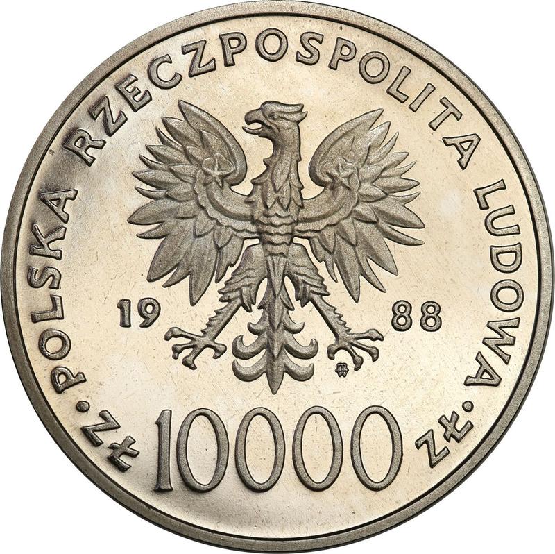Descubra el valor actual de la moneda polonesa de 10000 eslotis de 1988Pruebas "JuanPablo II" con marca de ceca MW ET. Níquel. Esta moneda de níquel pertenece al tiempo de la República Popular y fue acuñada en la ceca de Varsovia. ¿Cuál es el precio de una moneda como esta? El precio récord pertenece al lote 814 vendido en la subasta WDA - MiM por PLN 2100. La subasta tuvo lugar el 19 de octubre de 2019.