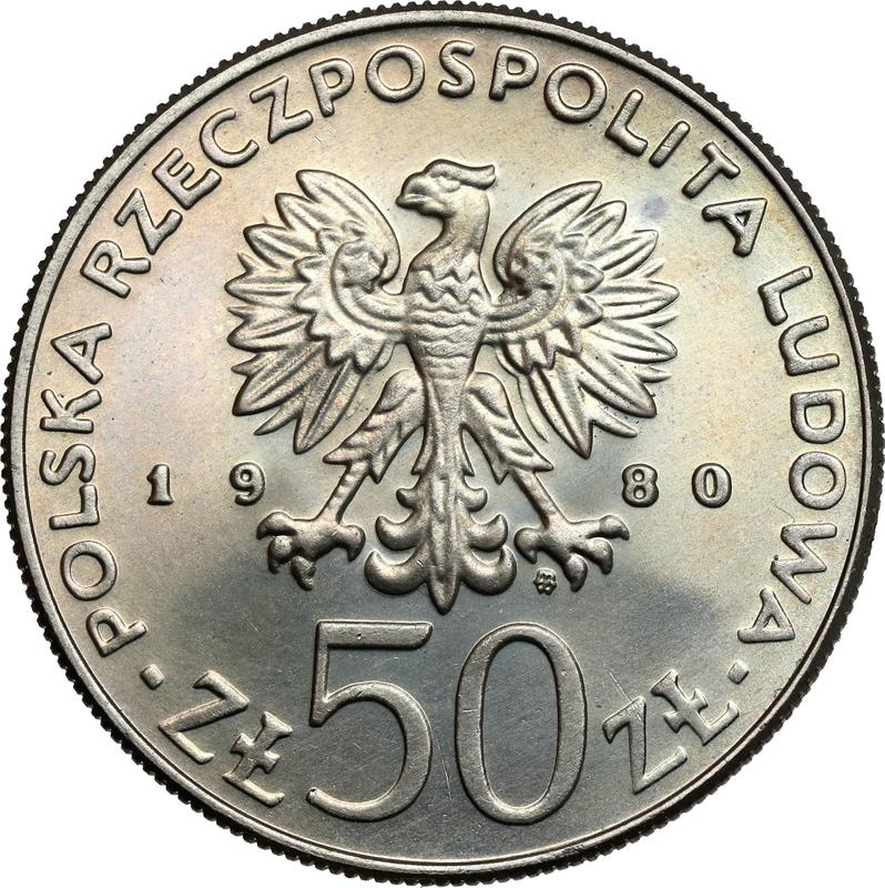 Descubra el valor actual de la moneda polonesa de 50 eslotis de 1980Pruebas "Boleslao I el Bravo" con marca de ceca MW. Cuproníquel. Esta moneda de cuproníquel pertenece al tiempo de la República Popular y fue acuñada en la ceca de Varsovia. ¿Cuál es el precio de una moneda como esta? El precio récord pertenece al lote 1385 vendido en la subasta Stary Sklep por PLN 7400. La subasta tuvo lugar el 9 de octubre de 2021.