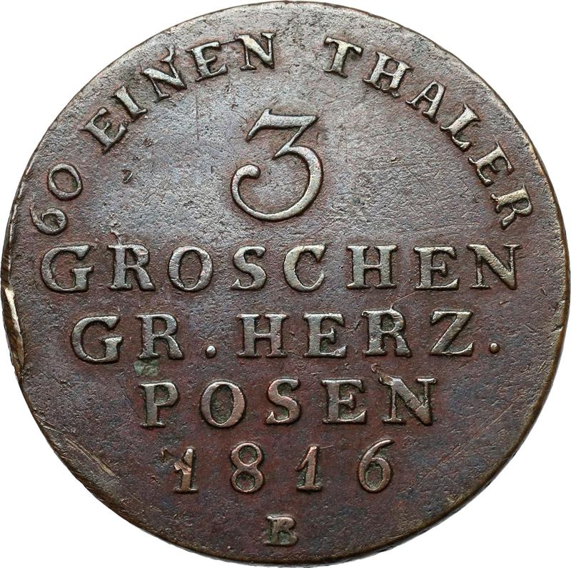 3 groszy 1816 B "Gran Ducado de Posen" (Polonia, Dominio Prusiano)