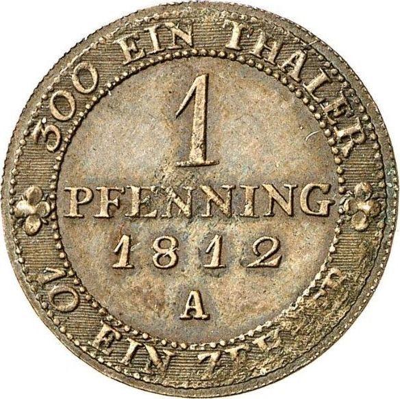Según los últimos datos, a fecha de 6 de diciembre de 2025, el valor medio de la moneda de 1 Pfennig del 1812. A es de 340 USD. La moneda no está hecha de un metal precioso, por lo que si su estado de conservación es deficiente, su valor y liquidez pueden ser muy bajos.