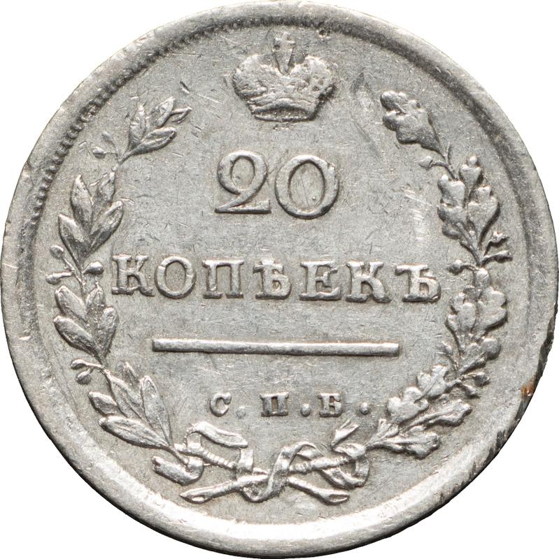 20 kopeks 1814 СПБ МФ "Águila con alas levantadas" (Rusia, Alejandro I)