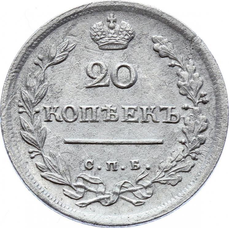 20 kopeks 1817 СПБ ПС "Águila con alas levantadas" (Rusia, Alejandro I)