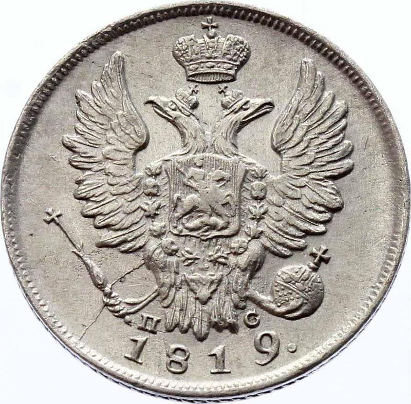 Descubra el valor actual de la moneda rusa de 20 kopeks de 1819 "Águila con alas levantadas" con marca de ceca СПБ ПС. Esta moneda de plata pertenece al tiempo de Alejandro I y fue acuñada en la ceca de San Petersburgo. ¿Cuál es el precio de una moneda como esta? El precio récord pertenece al lote 470 vendido en la subasta Morton & Eden Ltd por GBP 2600. La subasta tuvo lugar el 10 de junio de 2014.