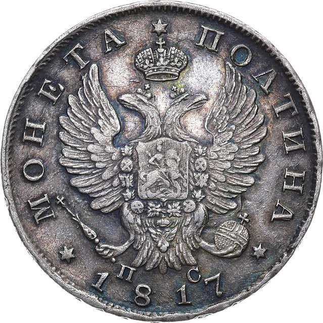 Según los últimos datos, a fecha de 6 de diciembre de 2025, el valor medio de la moneda de plata de Poltina (1/2 rublo) del 1817. СПБ. ПС. "Águila con alas levantadas" es de 150 USD.