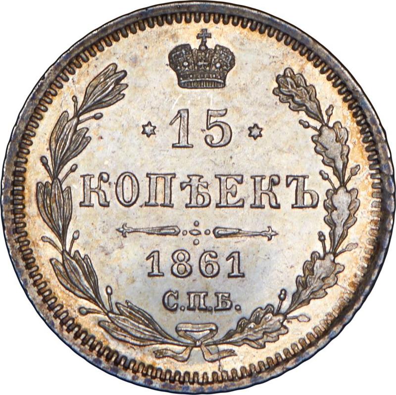 15 kopeks 1861 СПБ ФБ "Plata ley 725" (Rusia, Alejandro II)