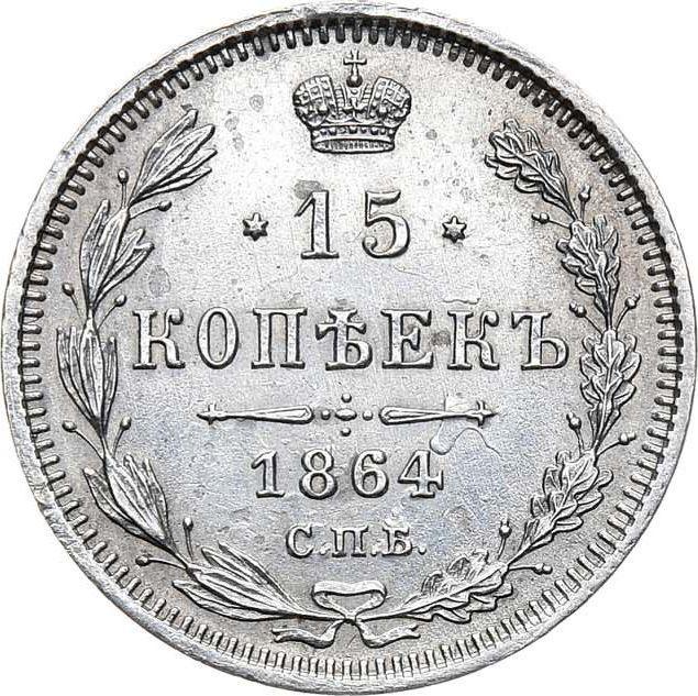 15 kopeks 1864 СПБ НФ "Plata ley 725" (Rusia, Alejandro II)