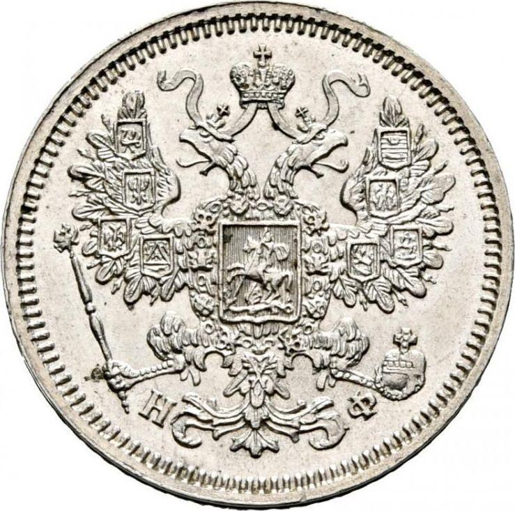 Descubra el valor actual de la moneda rusa de 15 kopeks de 1866 "Plata ley 725" con marca de ceca СПБ НФ. Esta moneda de plata pertenece al tiempo de Alejandro II y fue acuñada en la ceca de San Petersburgo. ¿Cuál es el precio de una moneda como esta? El precio récord pertenece al lote 894 vendido en la subasta SINCONA AG por CHF 700. La subasta tuvo lugar el 12 de octubre de 2015.