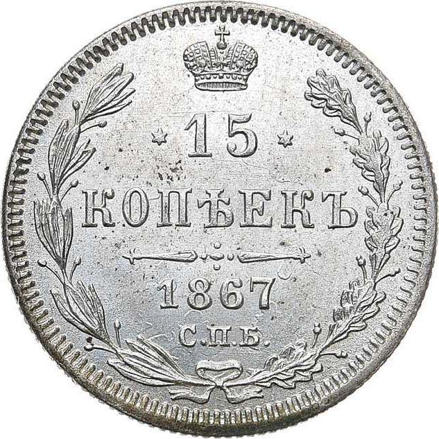 15 kopeks 1867 СПБ HI "Plata ley 500 (billón)" (Rusia, Alejandro II)