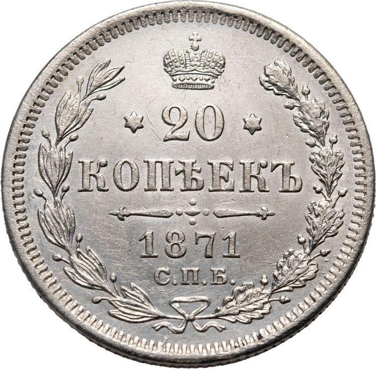 20 kopeks 1871 СПБ HI (Rusia, Alejandro II)