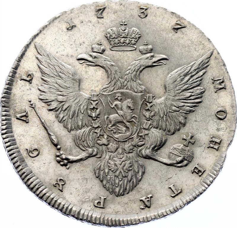 1 rublo 1737 "Retrato hecho por Gedlinger" (Rusia, Anna Ioánnovna)