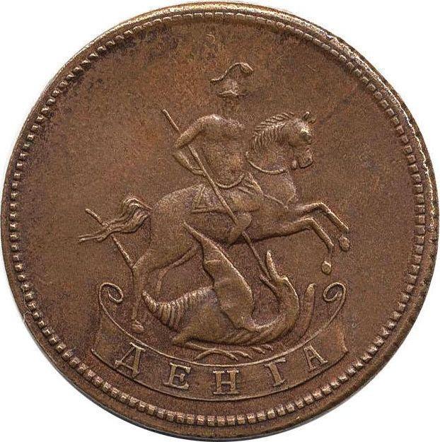 Denga (1/2 kopek) 1765. Reacuñación. Sin marca de ceca (Rusia, Catalina II)