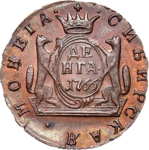 Denga (1/2 kopek) 1766 КМ "Moneda siberiana". Reacuñación (Rusia, Catalina II)
